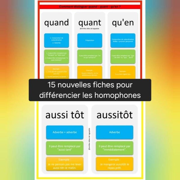 L'activité se compose de feuilles d'exercices et de fiches pour apprendre à différencier les homophones.