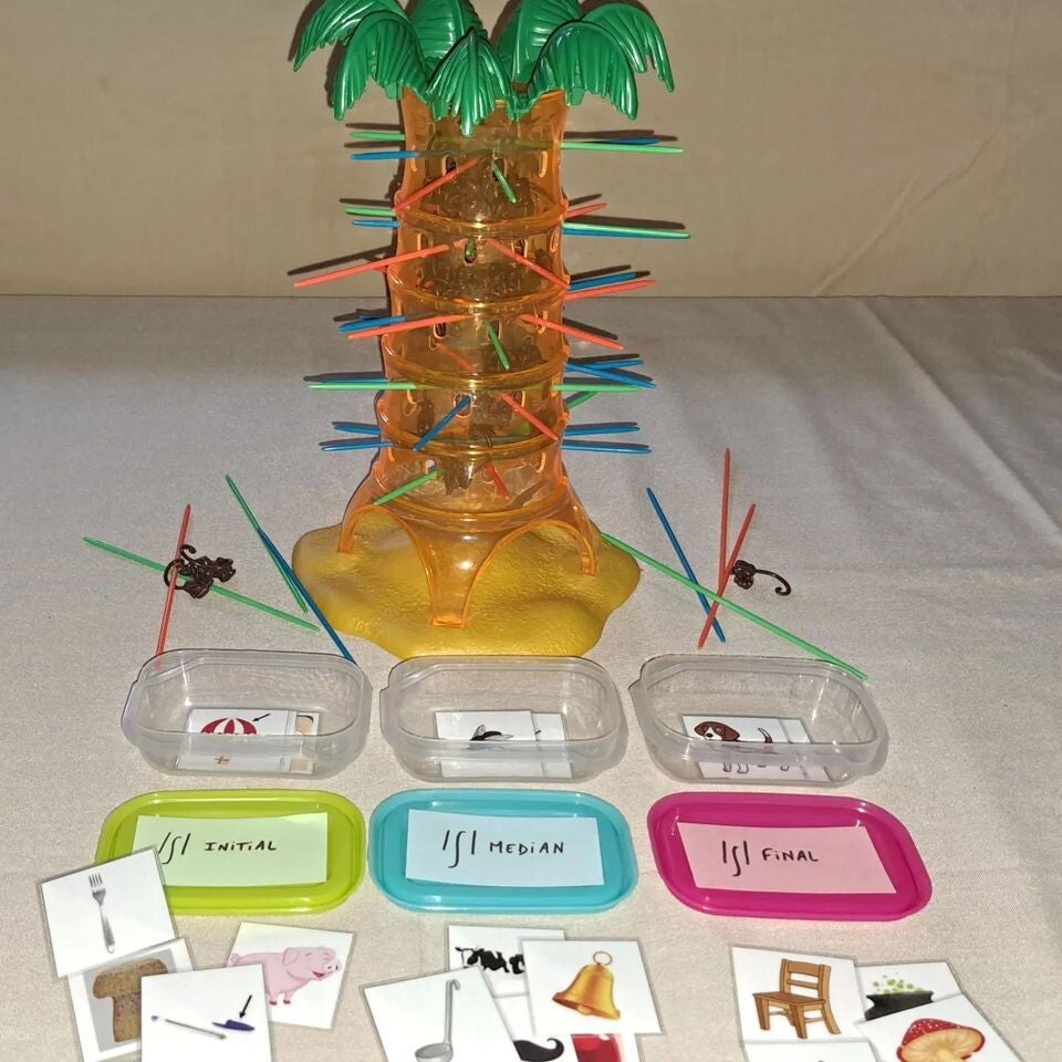Le premier jeu travaille l'articulation du phonème [ ʃ ] dans les trois positions.Le jeu SOS ouistiti comporte trois couleurs de bâtonnet, j'ai donc associé une position avec une couleur :