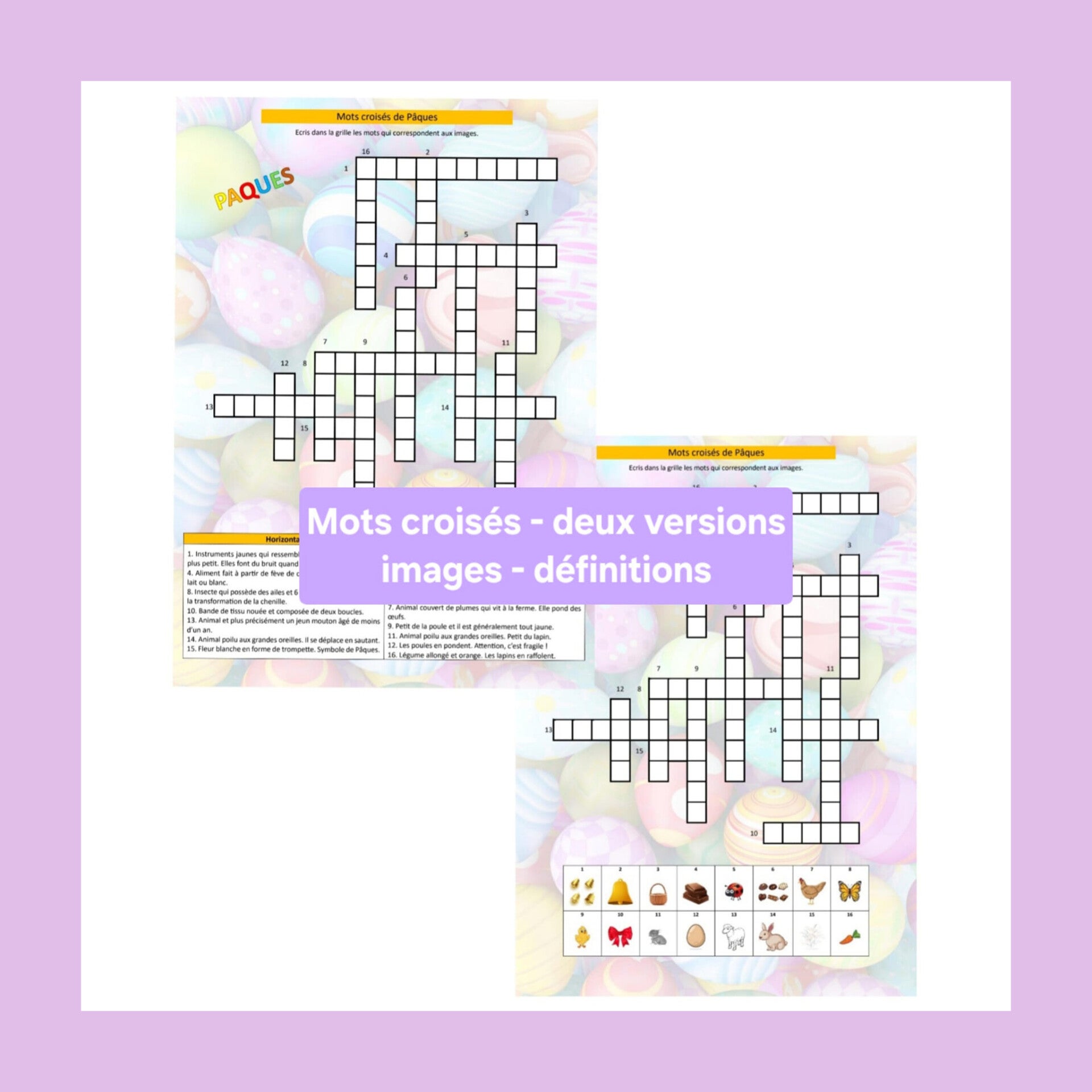 - Mots croisés -> deux versions (images/définitions)