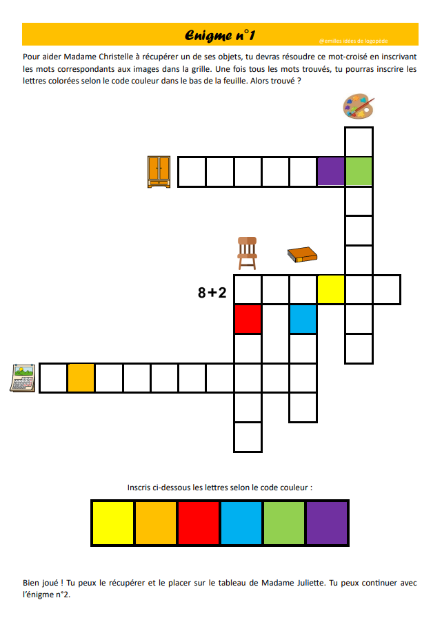 - 1 enveloppe orange (non fournie -> pour placer les 10 images)