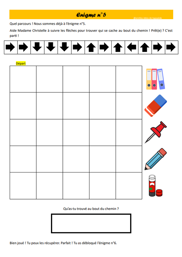 - 10 grandes enveloppes brunes (pour y mettre les 10 énigmes)