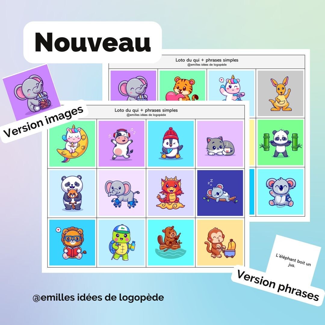 Attention ! Pour la version en langage oral, l’enfant doit construire une phrase avec le « qui ». Exemple : « L’éléphant qui boit ».