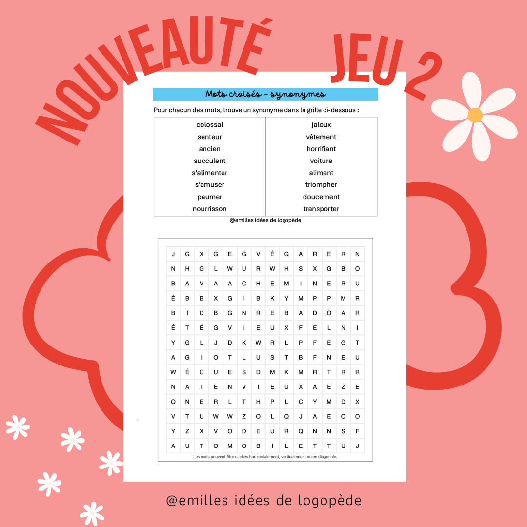 Trouver le synonyme de chaque mot et le chercher dans la grille.